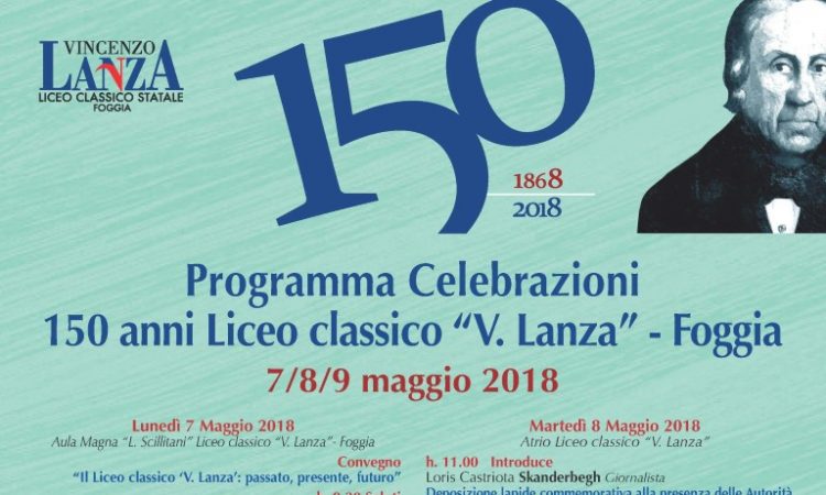 A tutto il popolo del Lanza Oggetto: LANZA CELEBRATION Grande Festa per i ‘150 ANNI DEL LICEO CLASSICO ‘V.LANZA’ Mercoledì 9 maggio 2018 Piazza Italia ( zona antistante Liceo classico ‘V.Lanza’) hh. 20.30-24.00 Per il 150° compleanno del Liceo classico ‘V. Lanza’ di Foggia un festeggiamento è d’obbligo: dopo due...