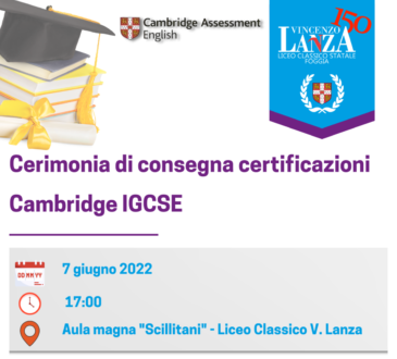 Si riportano gli interventi tenuti dalle rappresentanze degli studenti durante la consegna delle Certificazioni IGCSE avvenuta lo scorso 7 giugno 2022; i discorsi sono stati redatti a partire dalle riflessioni degli alunni delle classi 5A, 5E, 5F. Nelle pagine IG della scuola è possibile visionare i relativi video. Prof.ssa Laura Maggio FS Orientamento in Entrata Liceo Classico "V. Lanza" Foggia...