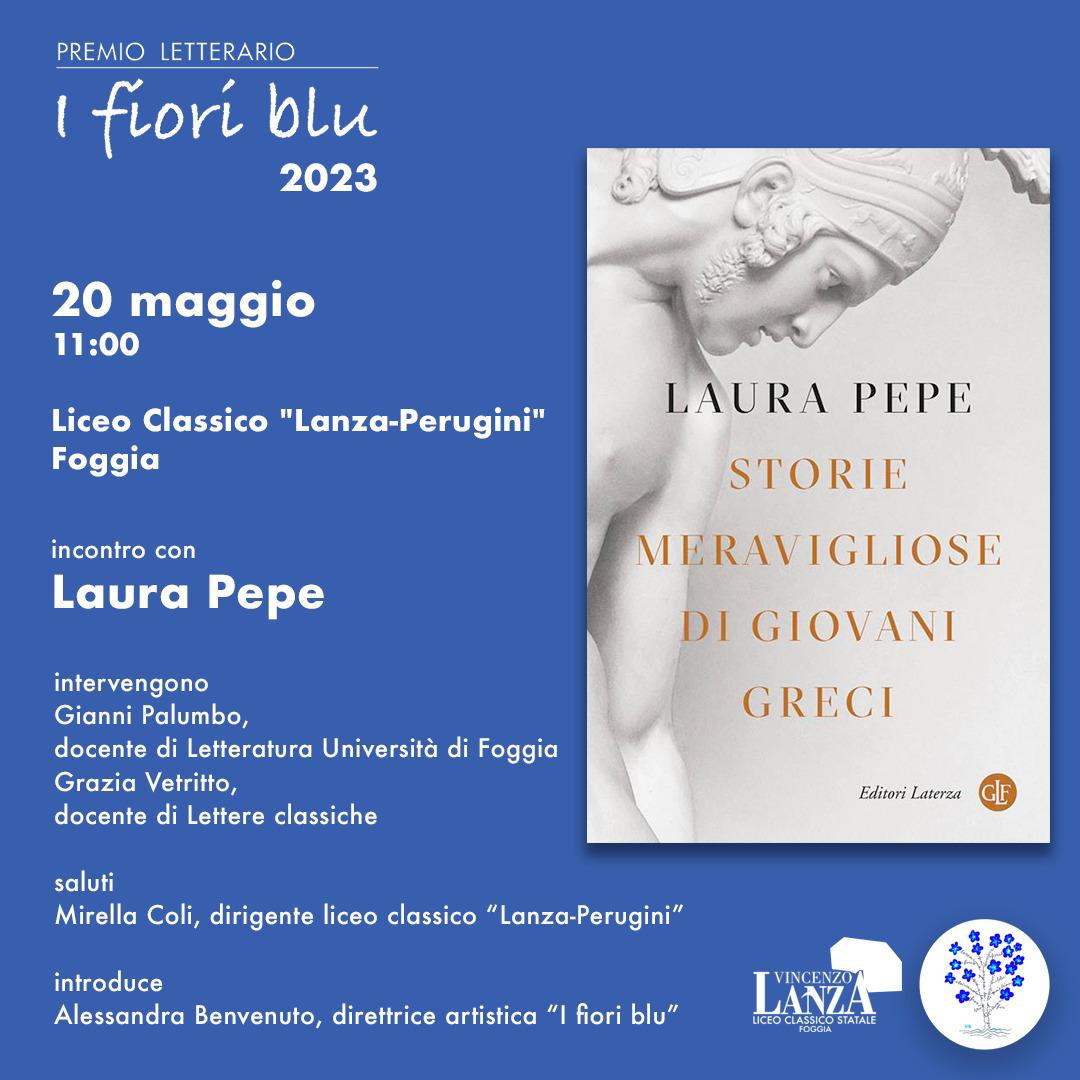 Sabato 20 Maggio p.v., alle ore 11:00, presso l’aula magna “L. Scillitani” del Liceo classico “V.Lanza”, ospiteremo Laura Pepe, autrice del libro Storie meravigliose di giovani greci, in gara per il premio I Fiori Blu -2023, cui la nostra scuola ha partecipato con un contributo digitale prodotto dagli alunni Ciletti Luca e Tacchio Sveva della classe 3A- Cambridge.