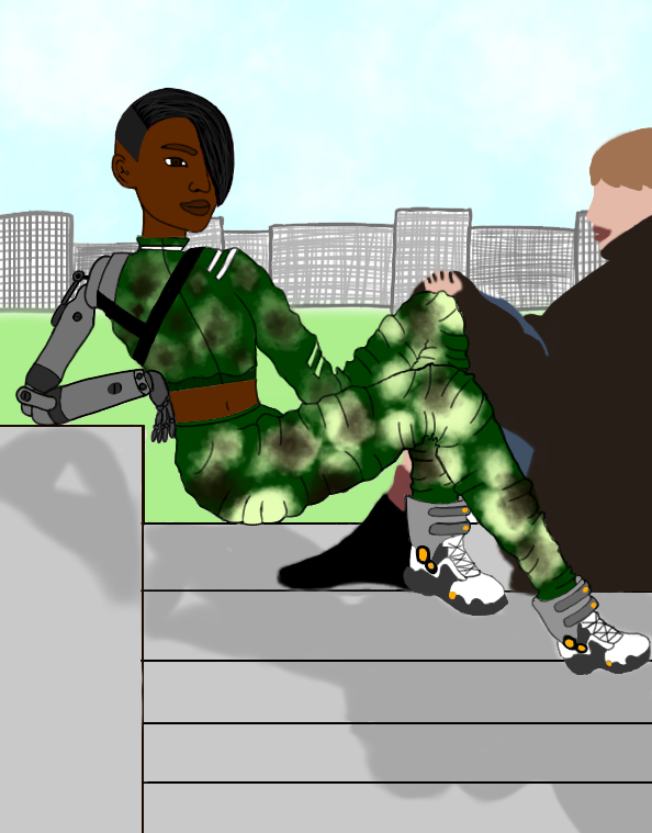 In questo disegno, realizzato con tavoletta grafica e software ibisPaint, Rebecca ha voluto rappresentare una ragazza senza un arto e la tecnologia che le ha permesso di continuare a vivere.