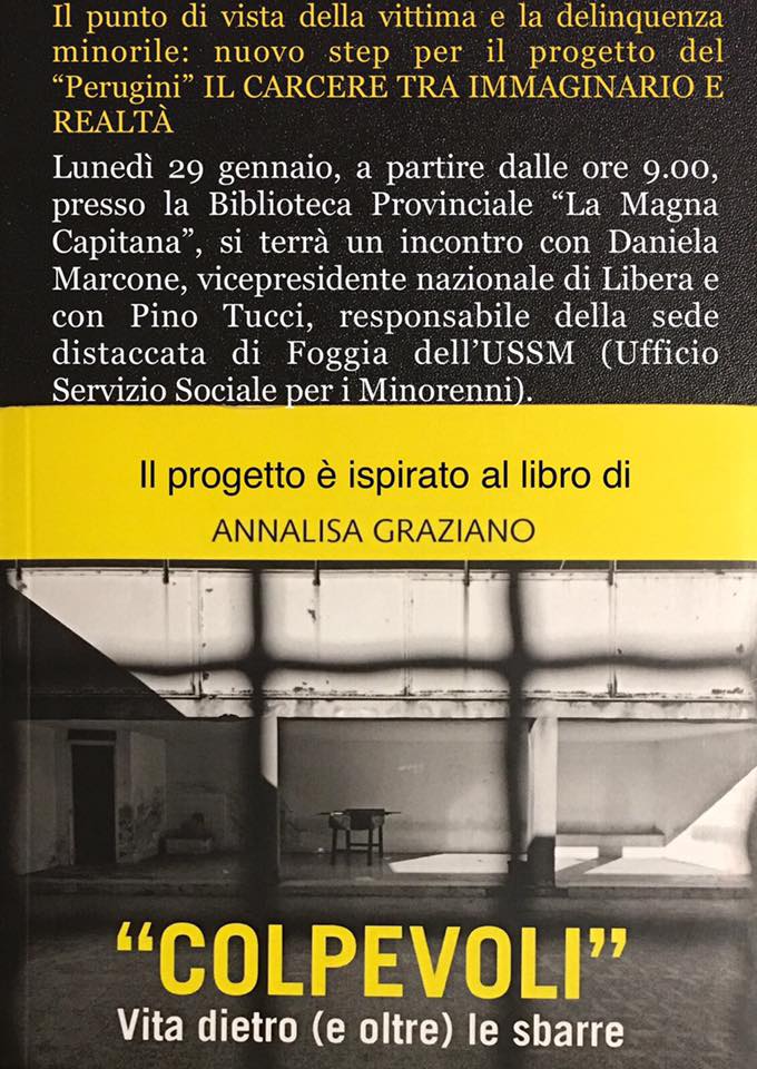 Lunedi 29 gennaio 2018 ore 9,00 presso la Biblioteca Provinciale “Magna Capitana” si da inizio ad un nuovo step del progetto: “Il carcere tra immaginario e realtà – il punto di vista della vittima e la delinquenza minorile”