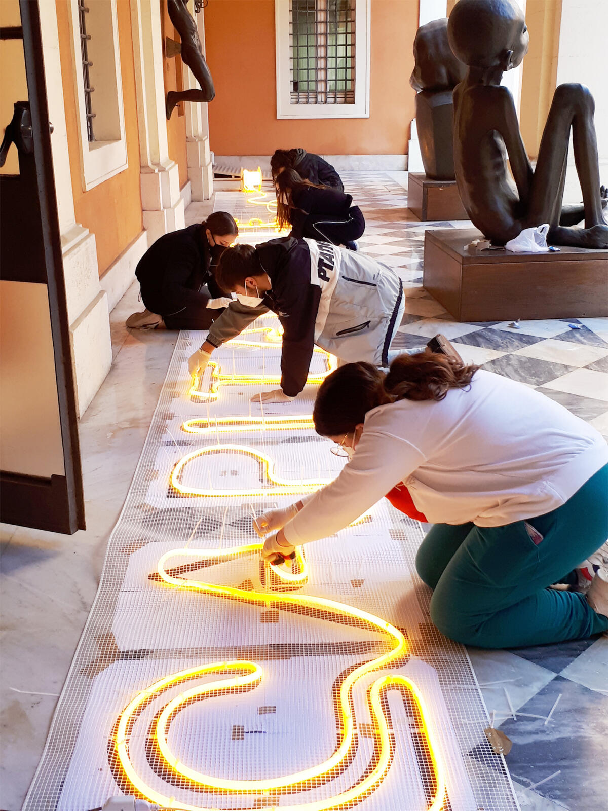 Gli alunni delle classi 4L e 5B, in attività di PCTO, hanno seguito tutte le fasi, dalla progettazione alla decisione dei materiali da utilizzare, fino alla realizzazione dell’installazione lavorando direttamente con le maestranze.