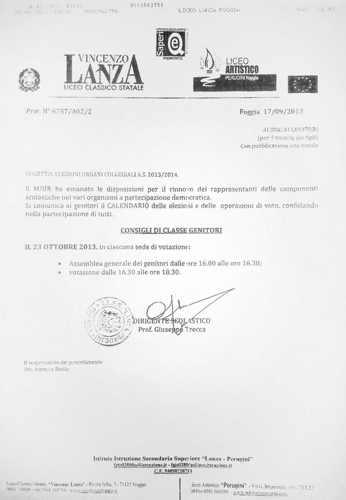 I genitori che incontrano difficoltà per le iscrizioni On-Line possono rivolgersi al sig. Leone Ferdinando presso la segreteria del Liceo V. Lanza di Foggia (Piazzale Italia n°3 – tel: 0881726619) nei seguenti giorni: Lunedì e sabato dalle ore 9:00 alle ore 11:00______Martedì e giovedì dalle ore 15:00 alle ore 16:00.________ Presso la segreteria del Liceo Artistico Perugini (tel: 0881661088) il mercoledì dalle ore 11:00 alle ore 17:00.